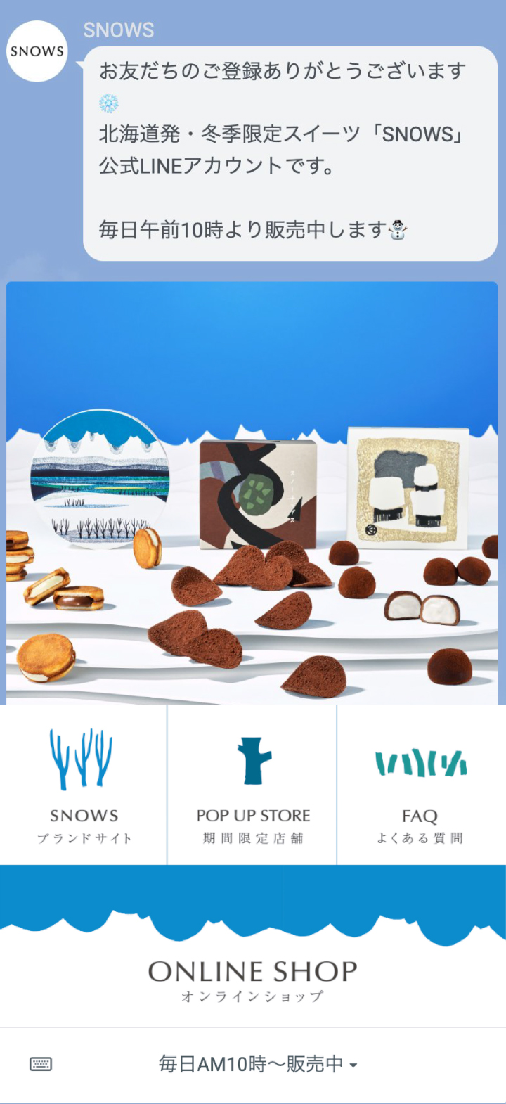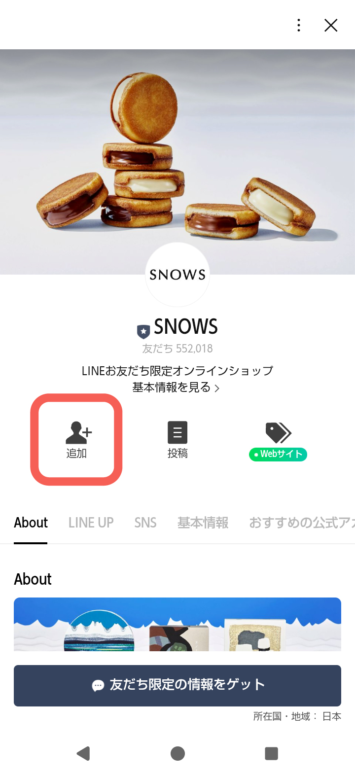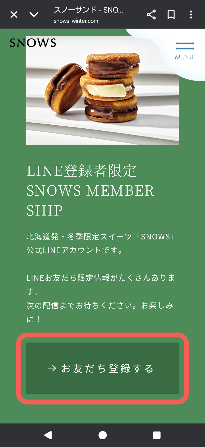 SNOWS公式ブランドサイトの「お友だち登録する」をクリック