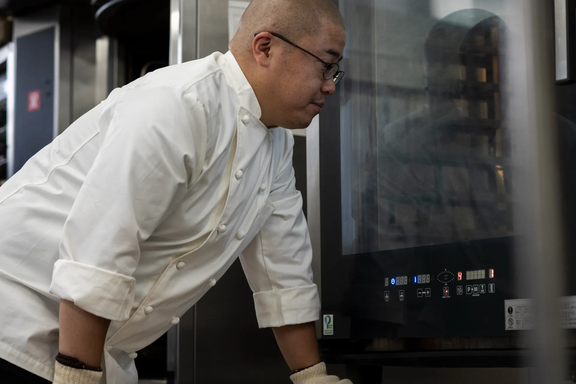 外側のパイ生地は一般的な縦の膨らみではなく、焼くと横に膨らむように成型。火が通るにつれ、薄い層が広がり、樹の幹や皮のような質感に変わっていきます。焼き上がりは、パイのサクサク感、クッキーのザクザク感というコントラストが際立つ食感。一口ごとに、余韻が残ります。「ほろ苦く、大人な味わい。目指したのは、自然と手が伸びてしまう、そんな魅力を兼ね備えたお菓子。自信作ができあがりました」と土橋さんはほほ笑みます。
