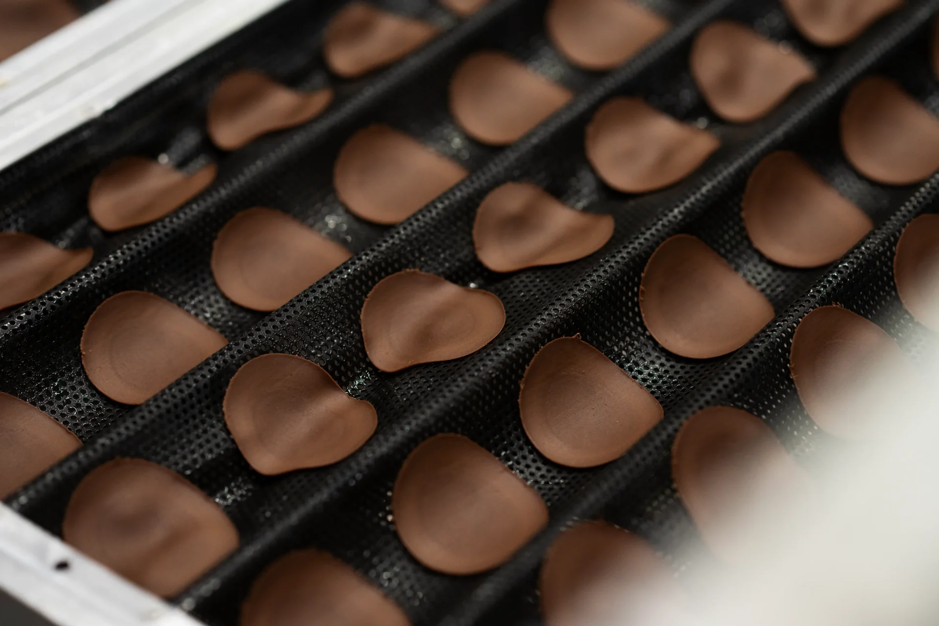 「今までにない、まるでチョコレートのようなチップスをつくりたい」。SNOWSを手掛ける、代表の長沼真太郎のアイデアから始まった、スノーチップスの開発。「面白いなと思いましたね。チョコを使った薄いお菓子って、私が知る限り存在しなかったので。実現したいと思いました」と振り返る土橋さん。