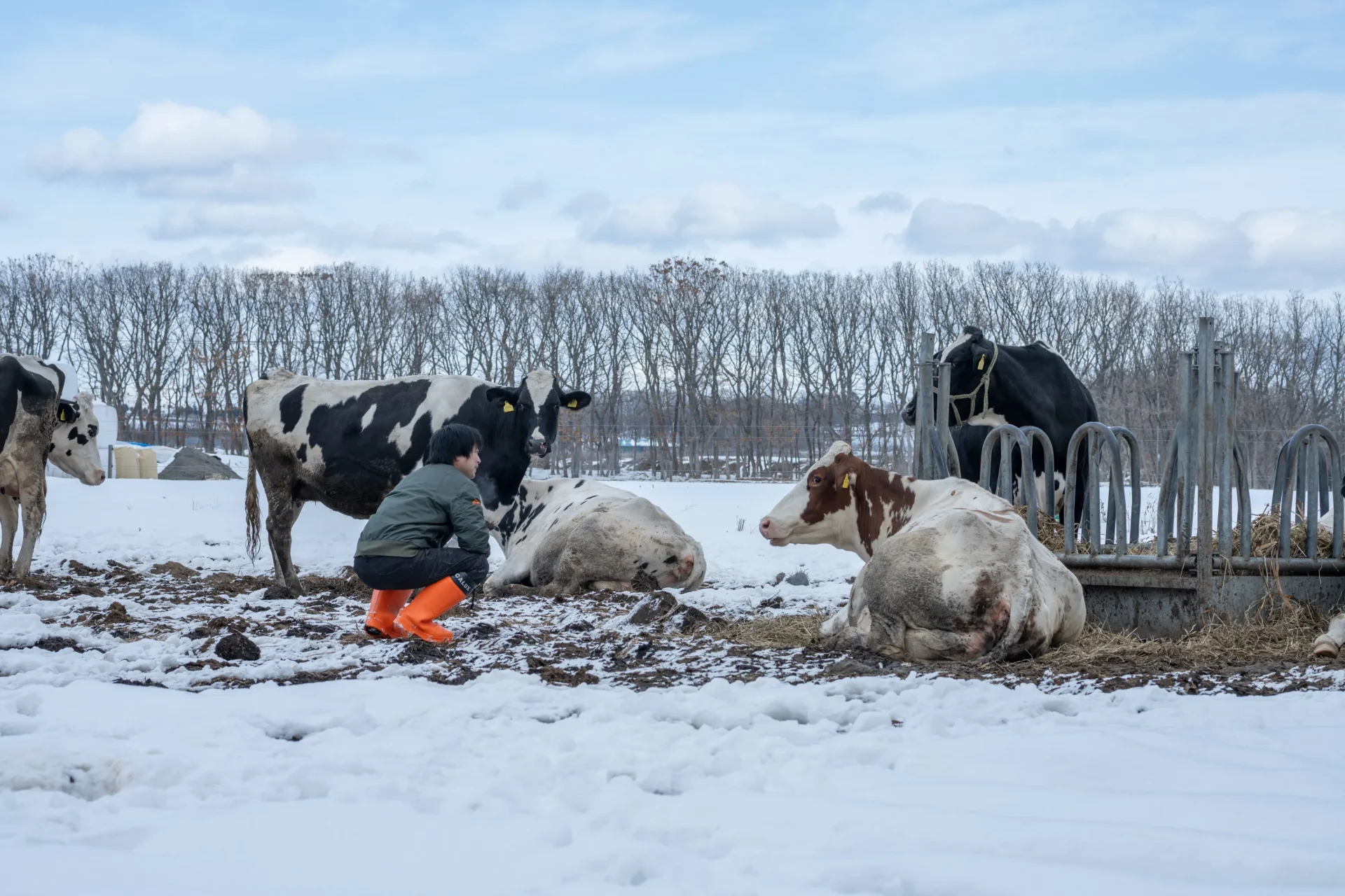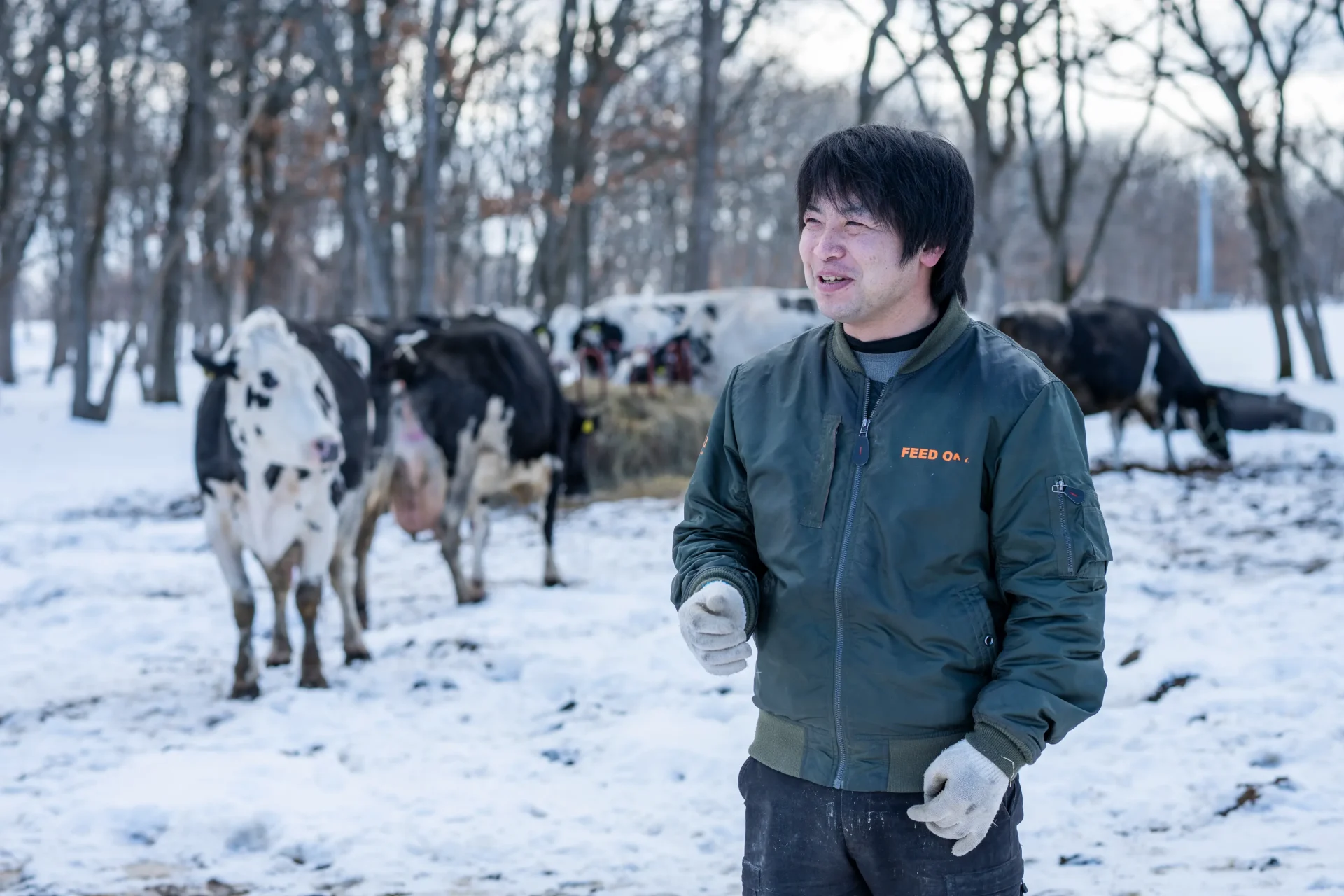 SNOWSのお菓子の要ともいえる、自社直営の放牧酪農場の牛たちから搾られる冬の濃い牛乳。この牧場で大切にしているのは、牛たちにできるだけストレスを与えない環境で育てること。そして、自然循環です。自然循環とはどのようなものなのか。雪が積もる今の時期、牛たちはどのように過ごしているのか。その秘密を探るべく、私たちは冬の日高牧場を訪ねました。