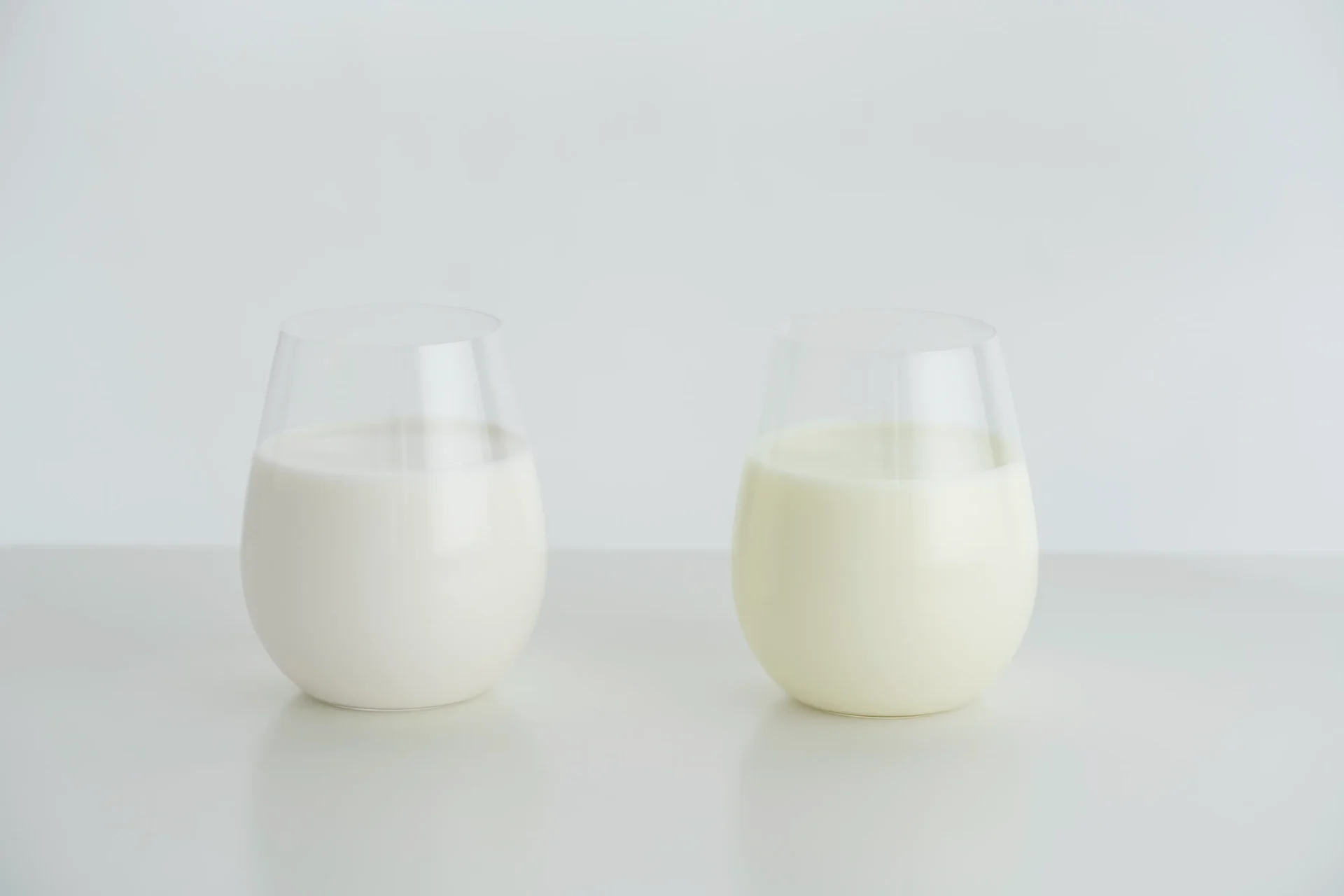 左:一般的な牛乳 右:冬の放牧牛乳